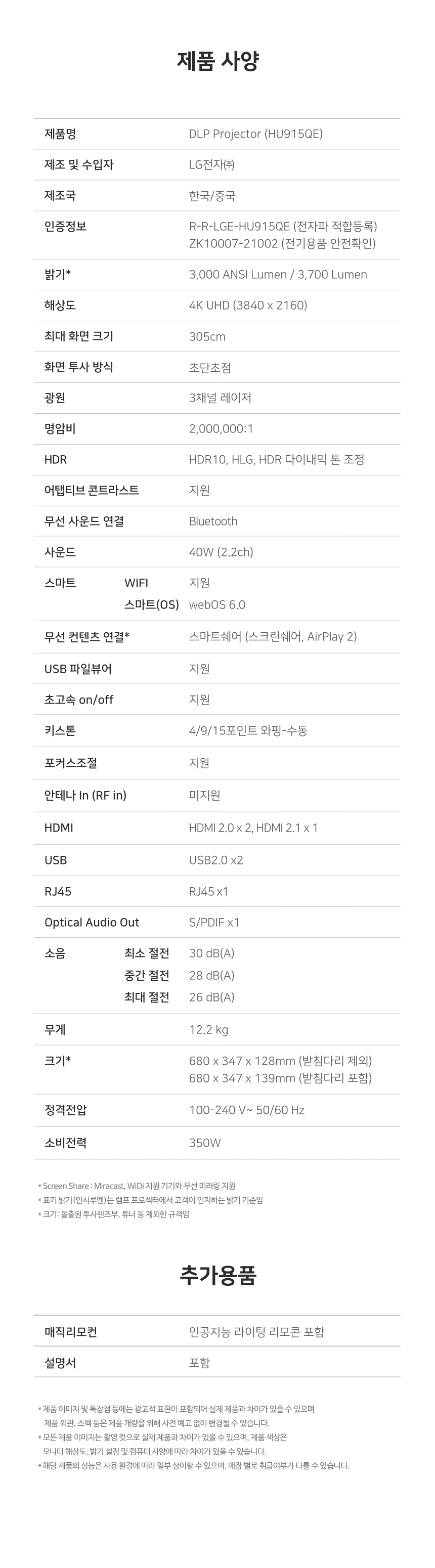 리버티 와이드 초단초점 전용 + LG HU915QE 프로젝터 패키지 (프로젝터 설치 미포함)