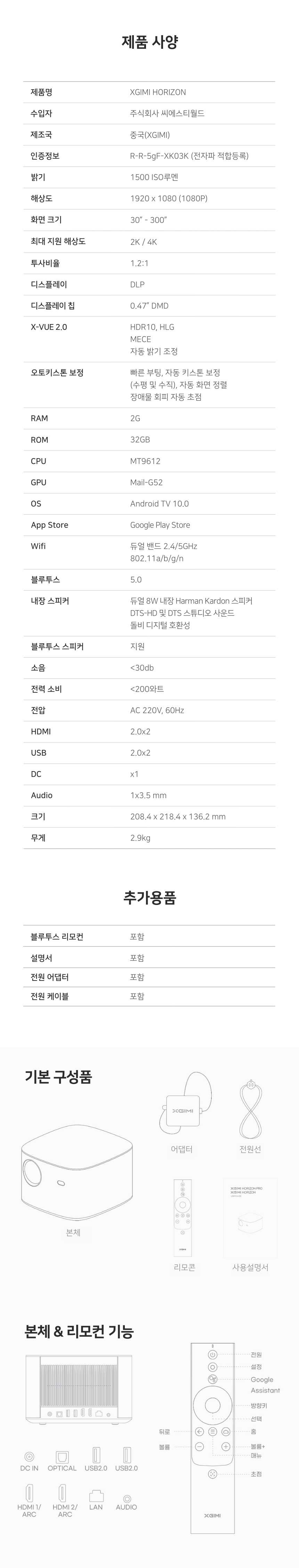 리버티 와이드 + Xgimi Horizon 프로젝터 패키지 (프로젝터 설치 미포함)
